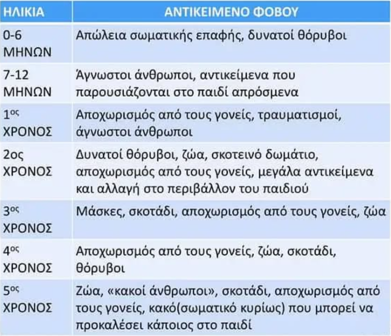 Συνηθισμένες φοβίες στη βρεφική και νηπιακή ηλικία
