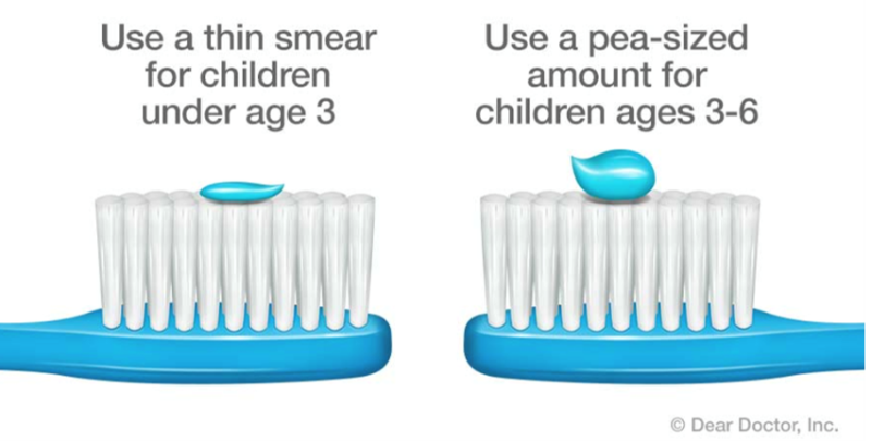 Το παράδειγμά σας είναι πολύ σημαντικό Μπορείτε να χρησιμοποιείτε παιδική φθοριούχο οδοντόκρεμα σε όλα τα παιδιά. Συνιστάται ποσότητα ενός κόκκου ρυζιού για παιδιά κάτω των 3 ετών και ενός μπιζελιού για παιδιά ηλικίας 3-6 ετών