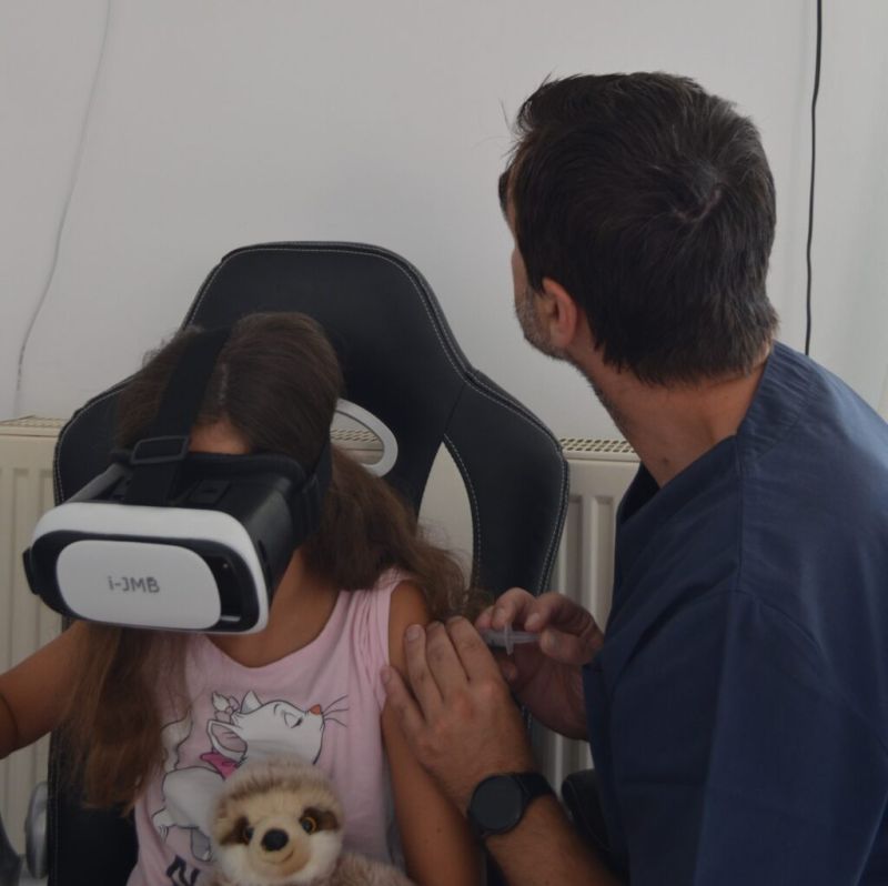 Στο ιατρείο μας έχουμε τη χαρά να χρησιμοποιούμε τεχνολογία virtual reality και το πρόγραμμα vaccine hero για παιδιά άνω των 2 ετών. Τα παιδιά παρακολουθώντας τις περιπέτειες του vaccine hero ξεπερνούν το άγχος του επικείμενου εμβολιασμού.