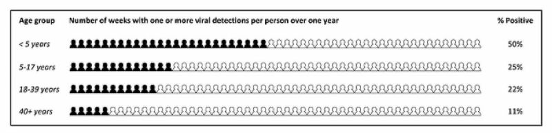 Αριθμός εβδομάδων με ανίχνευση τουλάχιστον ενός ιού σε κάθε άτομο ανάλογα με την ηλικία του